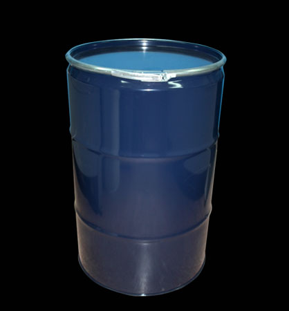 These UN certified 1A2 steel drums with 210 liter nominal capacity are suitable for packaging and transporting of liquids (in an inner bag) and solid substances. The drums are well suited for container van transport. It is constructed with 0.8 to 1.2 millimeter thick cold rolled steel sheets. The bottom plate is permanently attached through mechanical seaming to the cylindrical body. The top plate can be removed as a lid and closed by means of a lock ring band. The drum body opening is rolled to a diameter value less than the seam rim diameter. The external surface is painted with industrial grade baking enamel while the interior surface is lined with food grade epoxy phenolic coating.